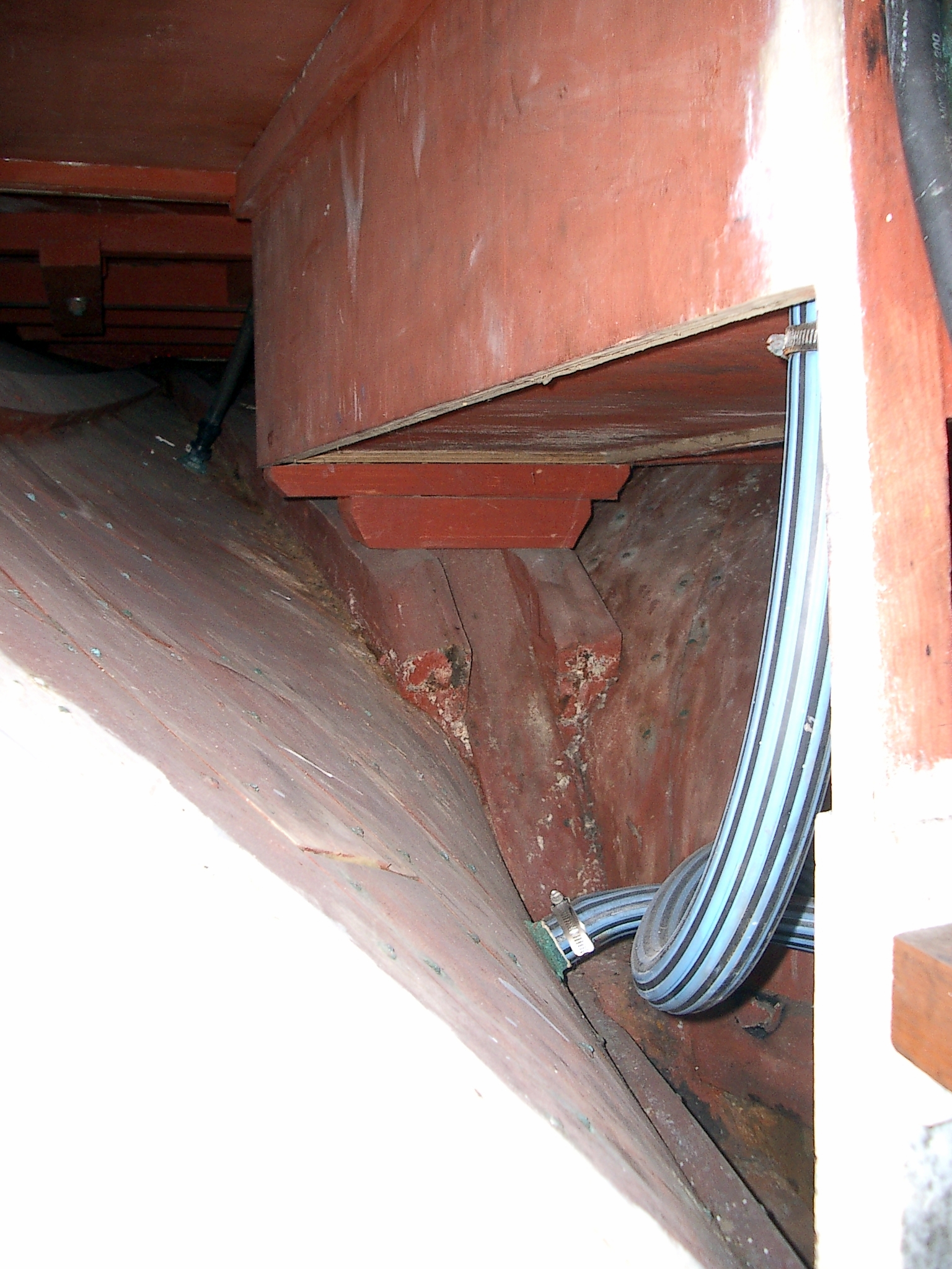 Stripped of her sails and running rigging, Rogue is readied to be lifted out of the water for the beginning of a rolling restoration.