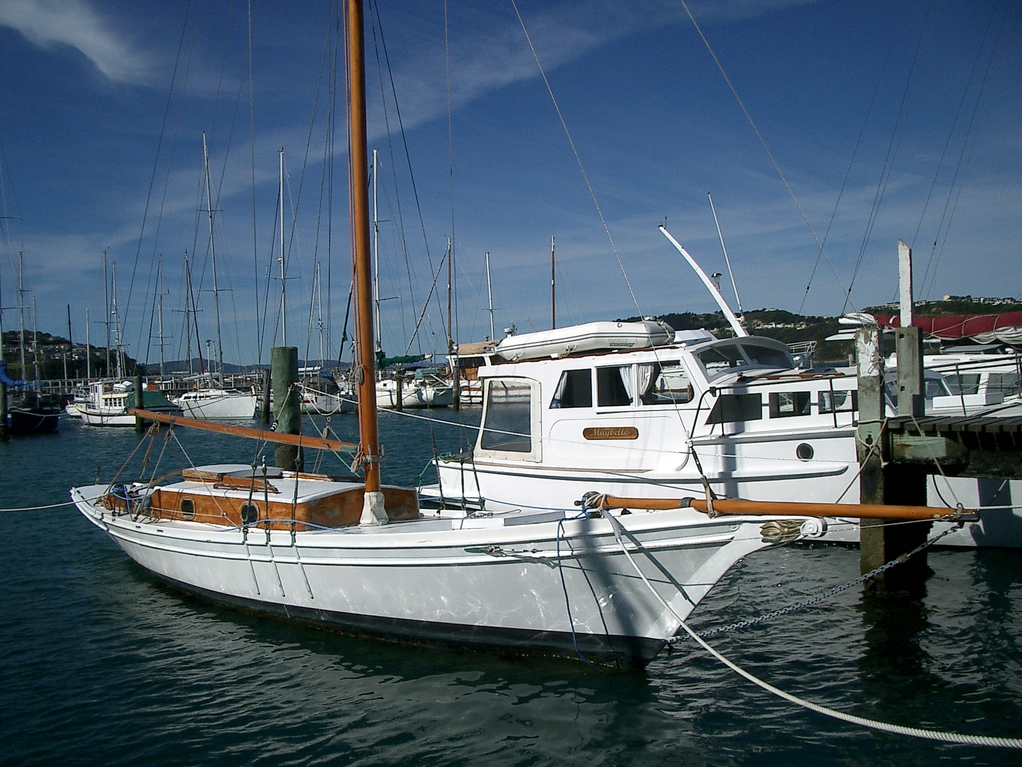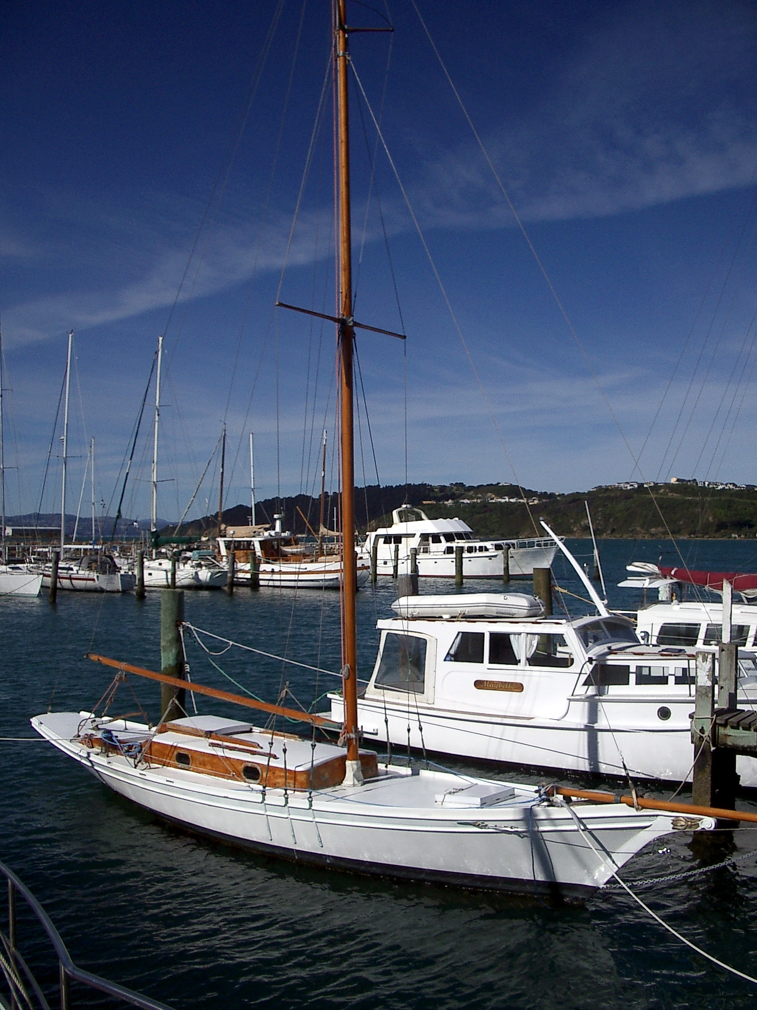 Rogue is a triple-skin kauri hulled, flush decked, gaff rigged 32' racing cutter from NZ — Chas Bailey Jr's first design.