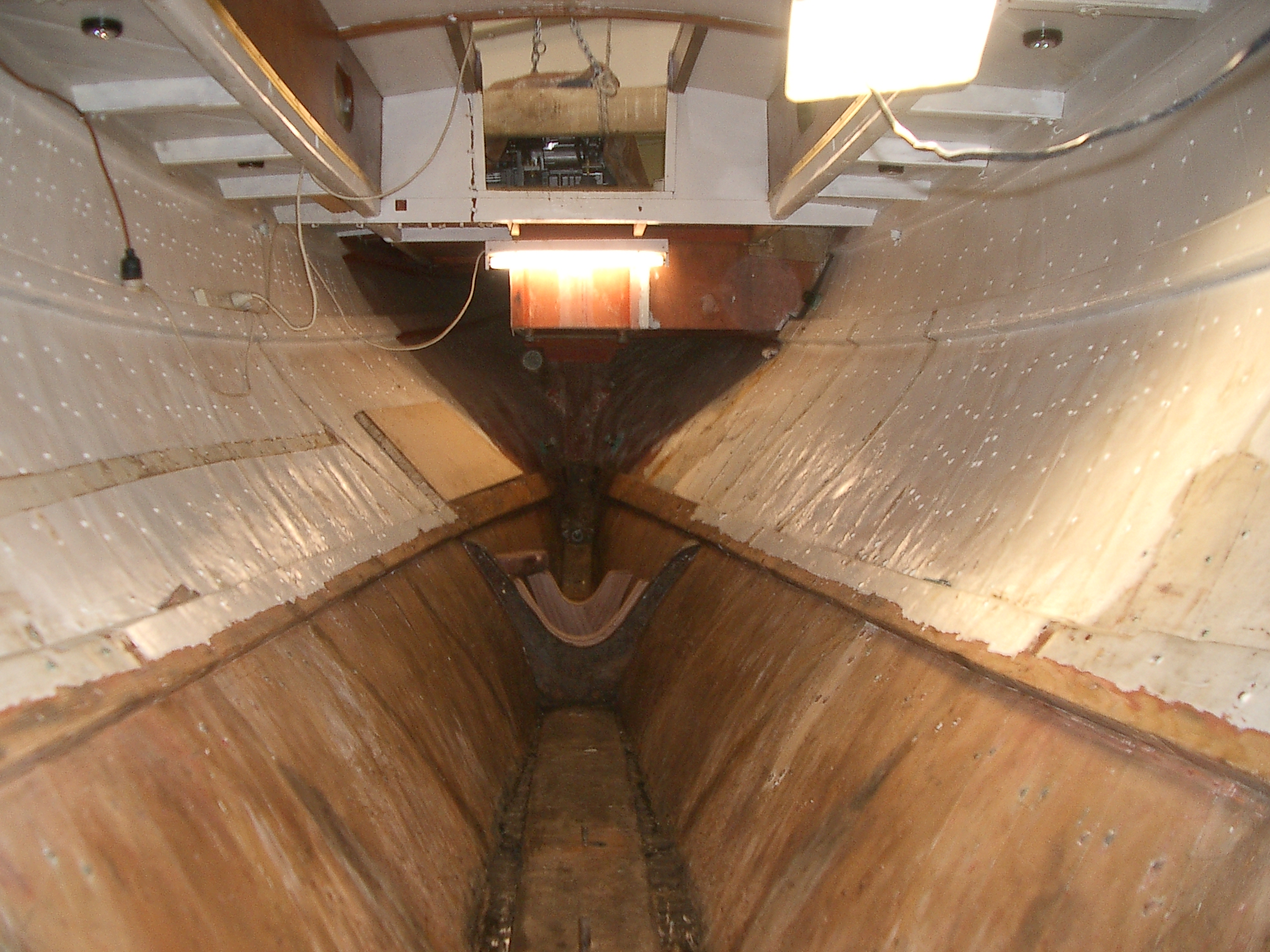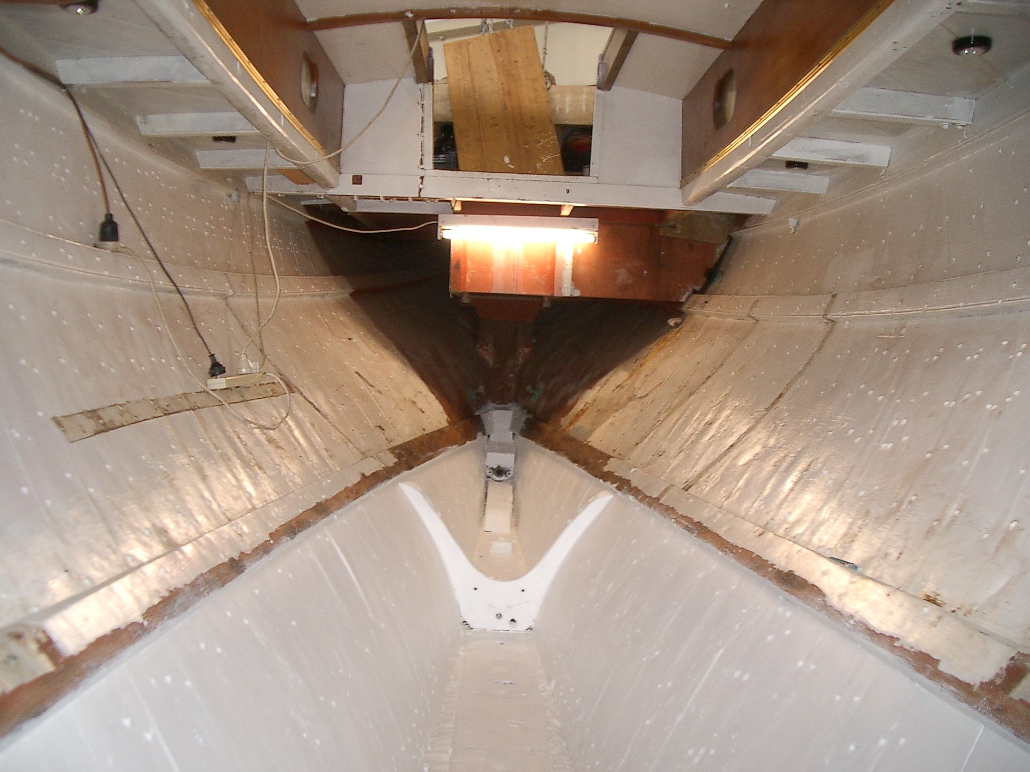Bore floors #0 and #1 and keel for bolts. Rebate all floors and keel for washers. Screw in engine bay floors and beds. Bore for bed retainers, limber holes and floor-to-floor bolts. Measure for and make floor bolts. Have engine bed retainers made. Fit and sand all. Fit floor, mark, remove, and cut rounded ends. Radius and sand all. Epoxy seal, prime (1 coat), and undercoat (2 coats) all floors and beds.