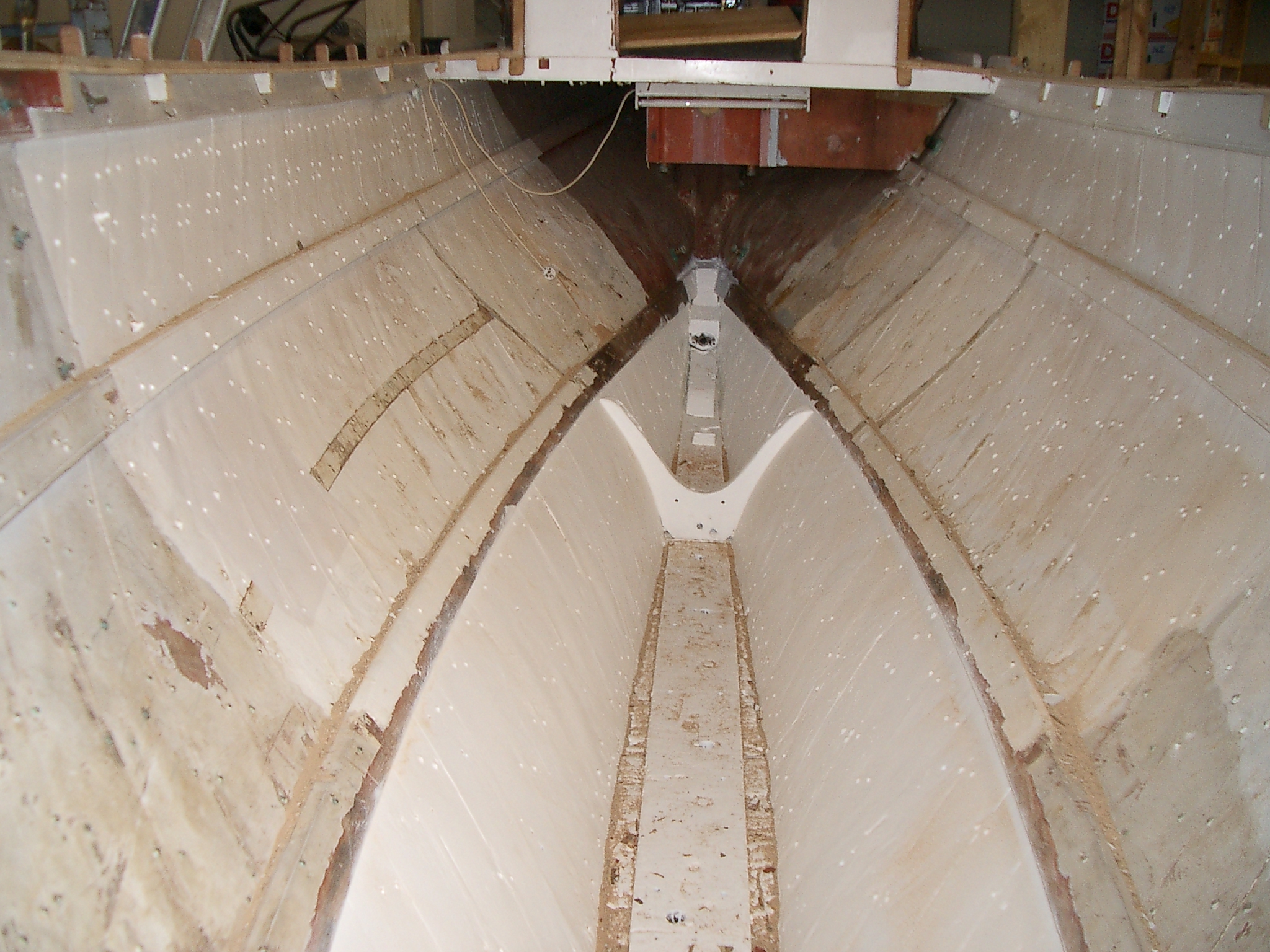 Collect nuts and washers from Barclay Engineering. Paint undersides of floors with two coats of topcoat. Carefully remove sidedecks. Remove chainplates and padeyes. Remove all foredeck hardware.