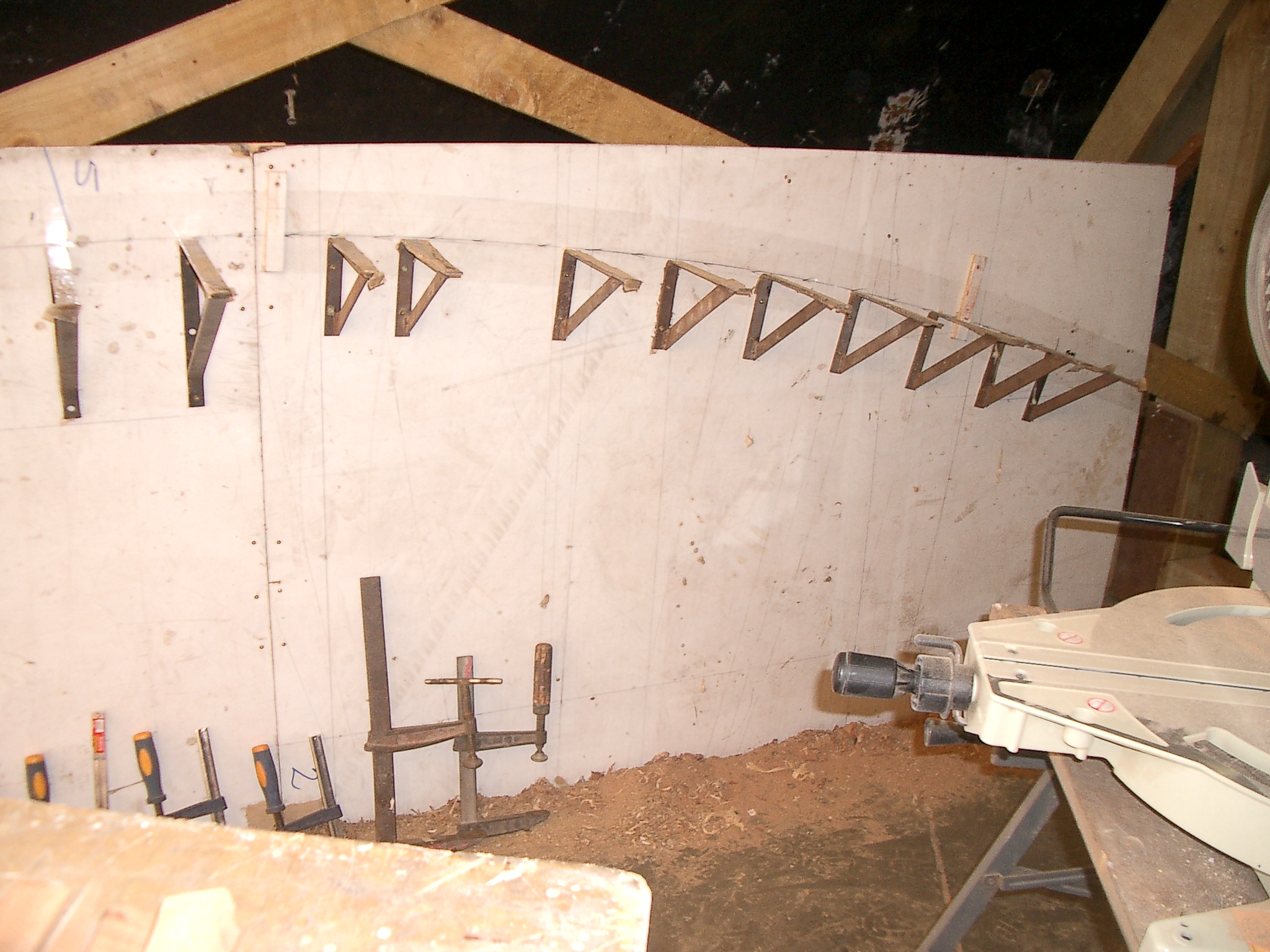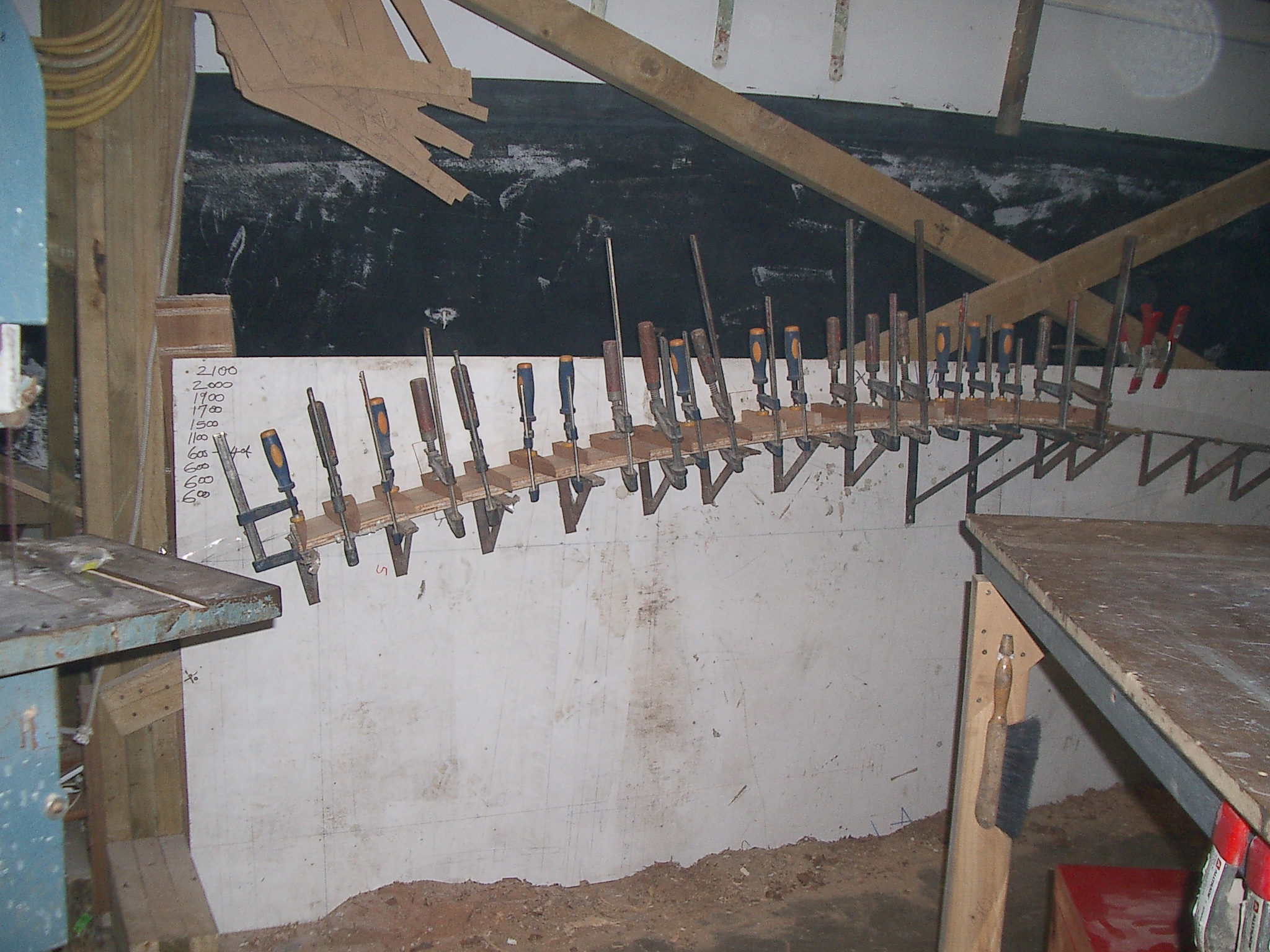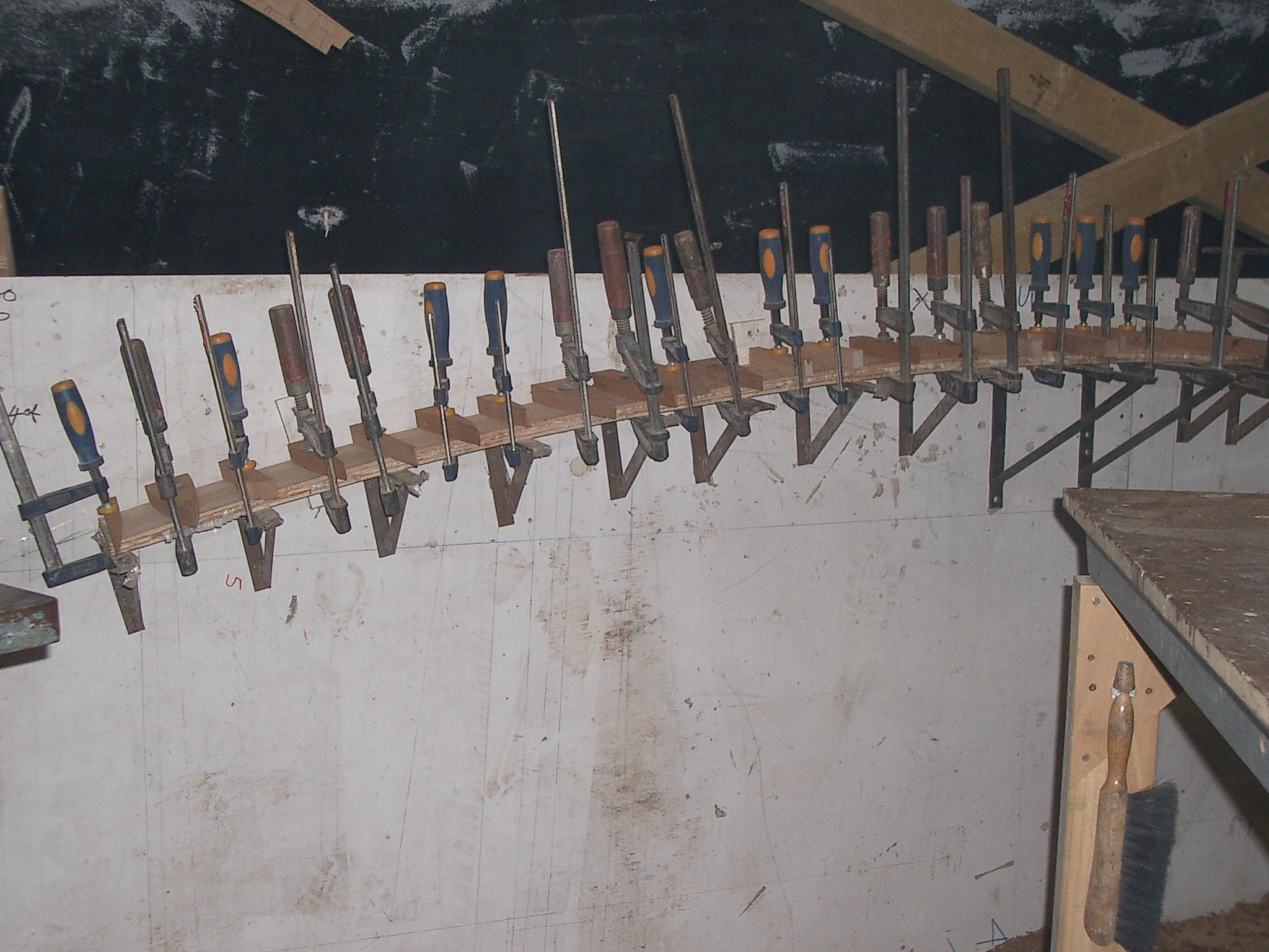 Collect, rip, and machine timber; set up lamination jig and glue up deckbeams; clean up and trim all beams.