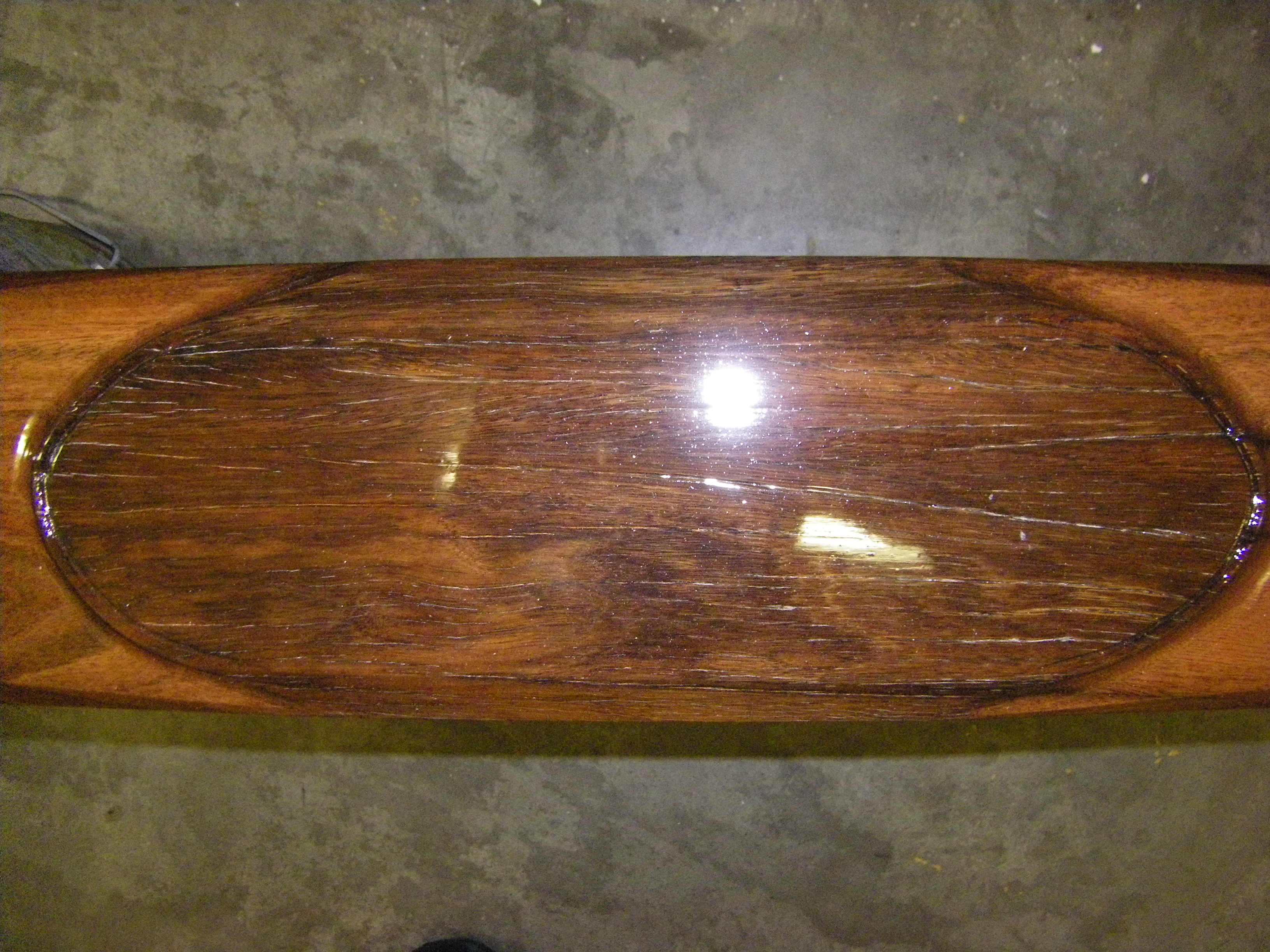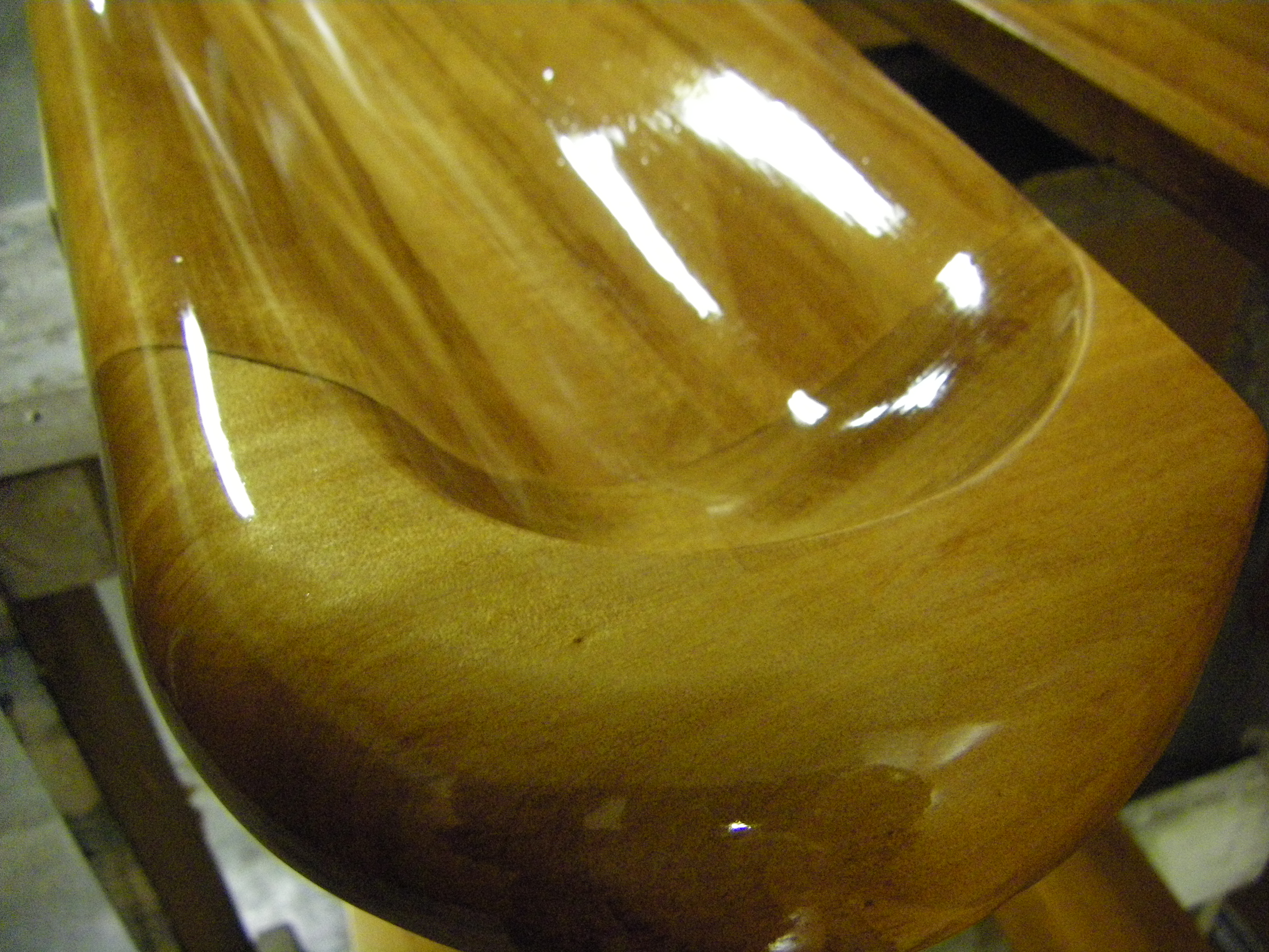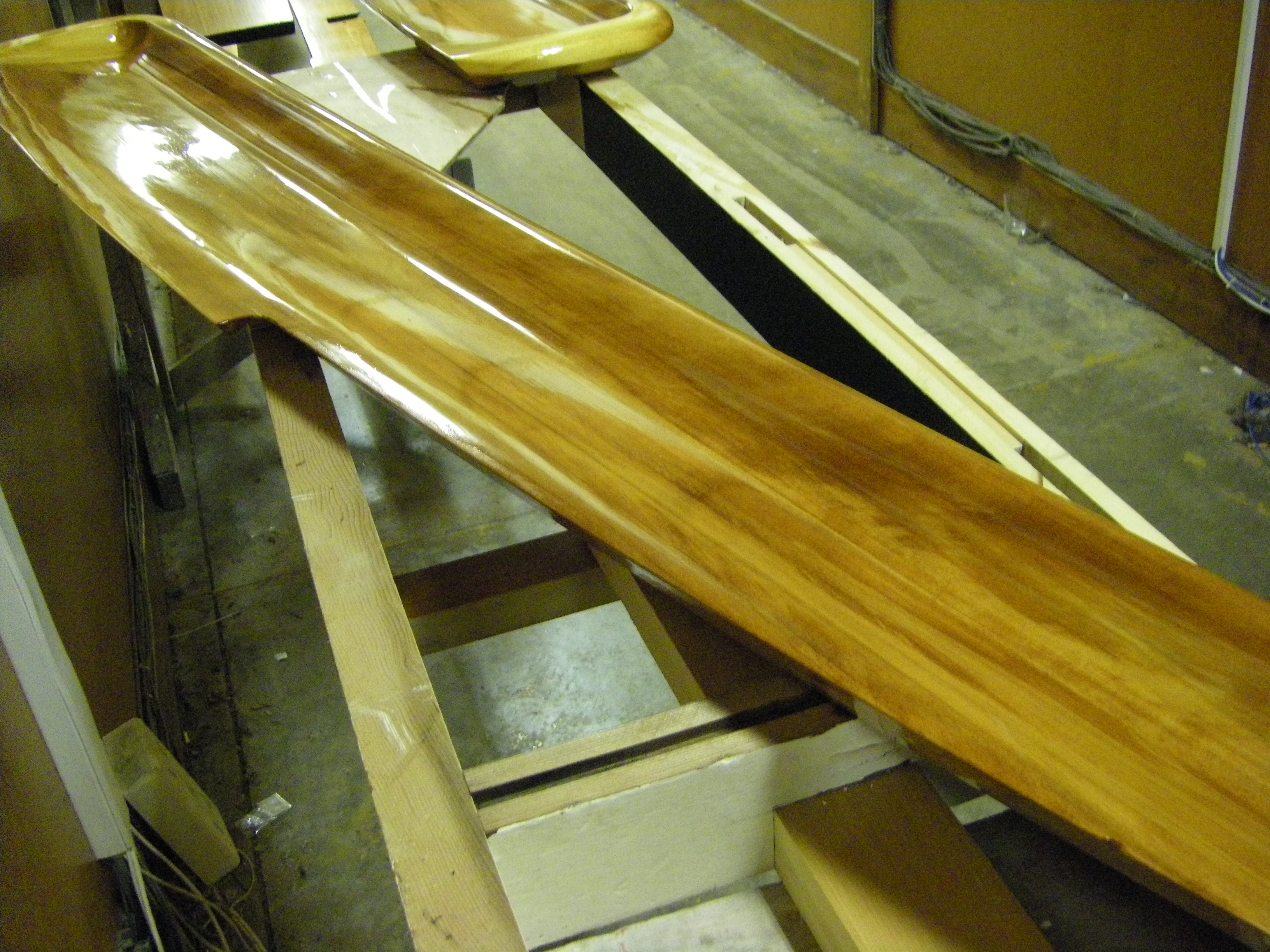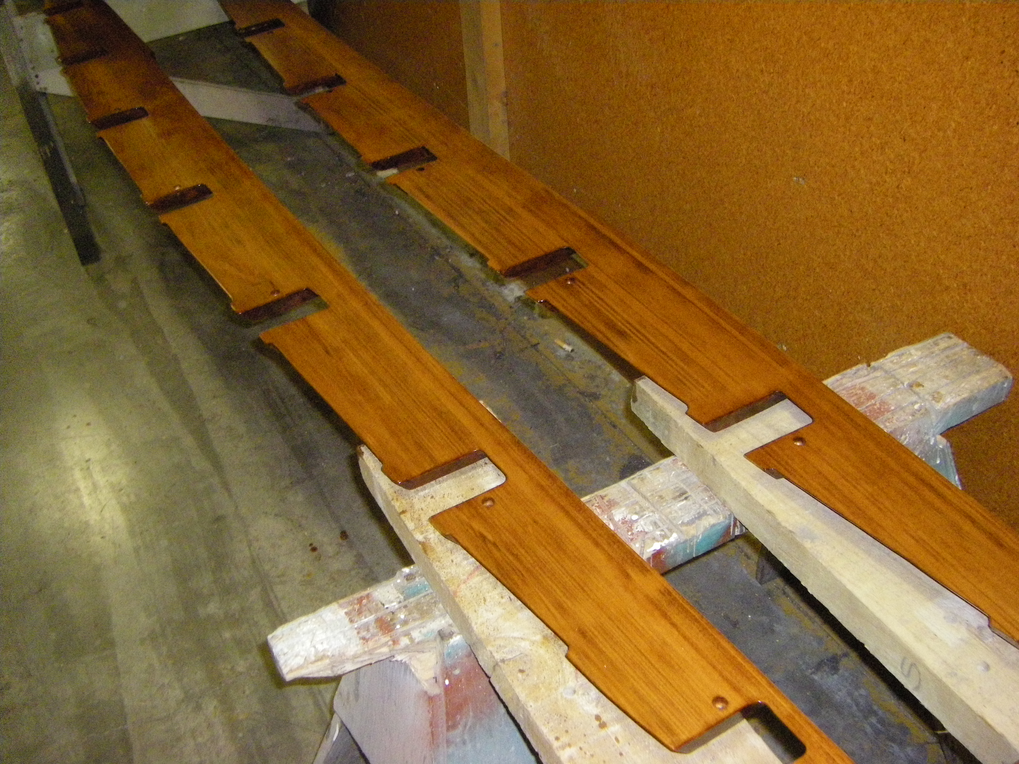 Reeve out old putty between inner layer of planking. Prepare and paint remaining section of hull inside: one coat of primer, two coats of undercoat, and two topcoats.