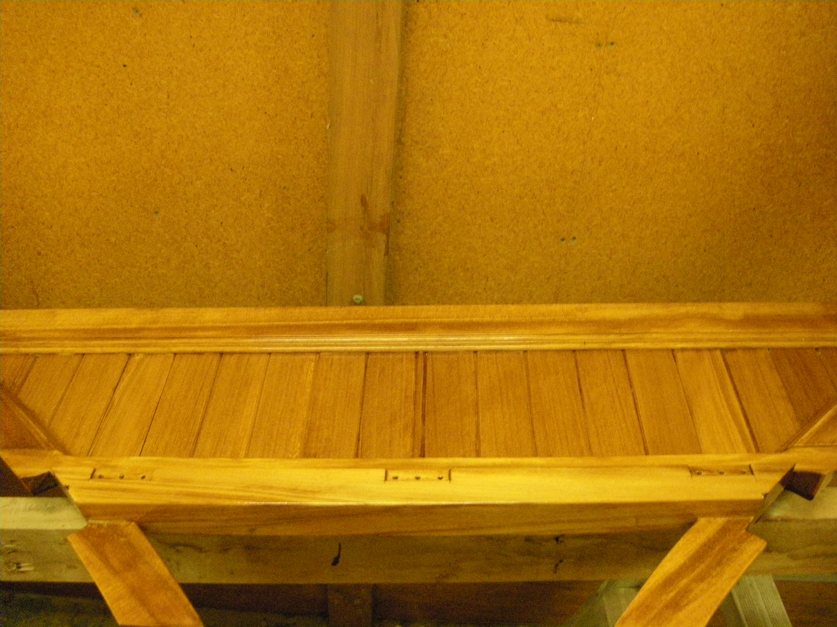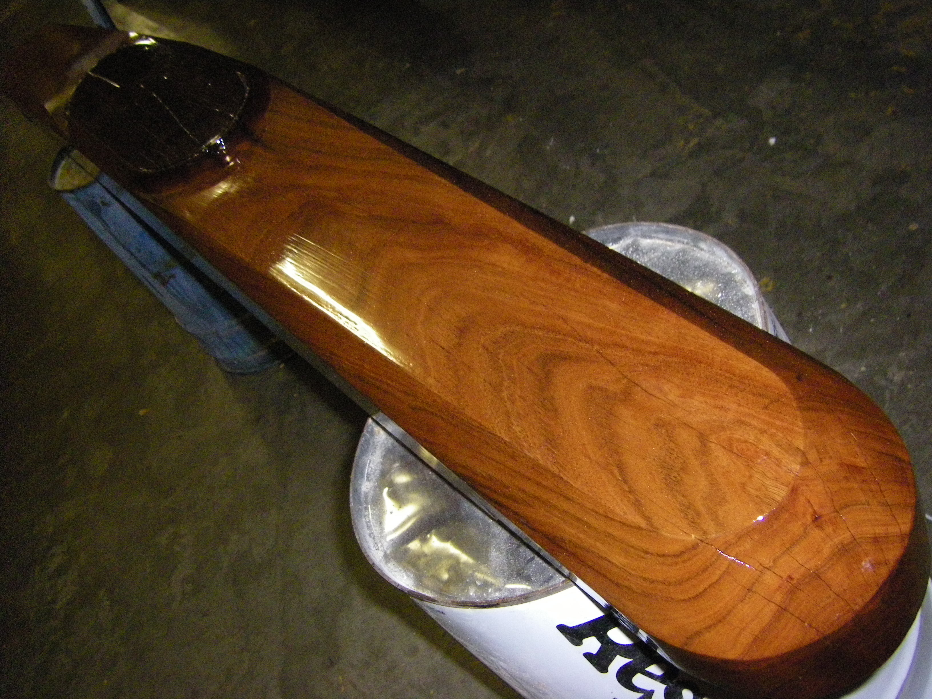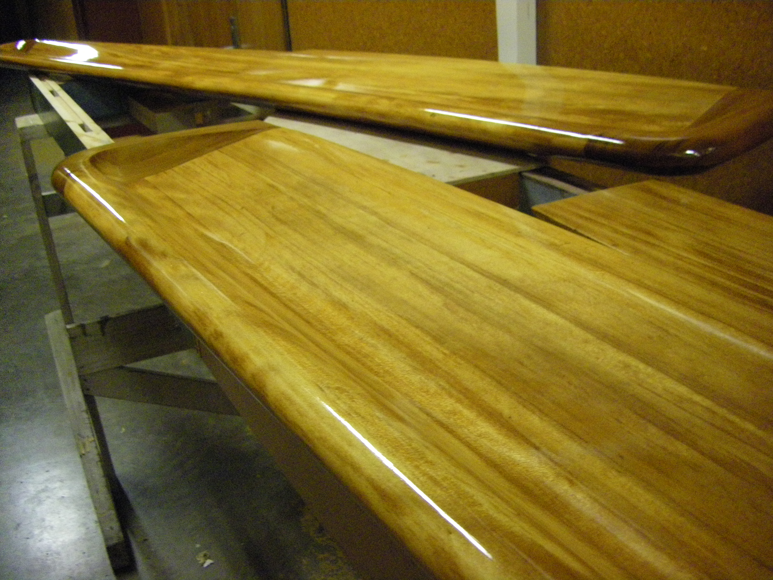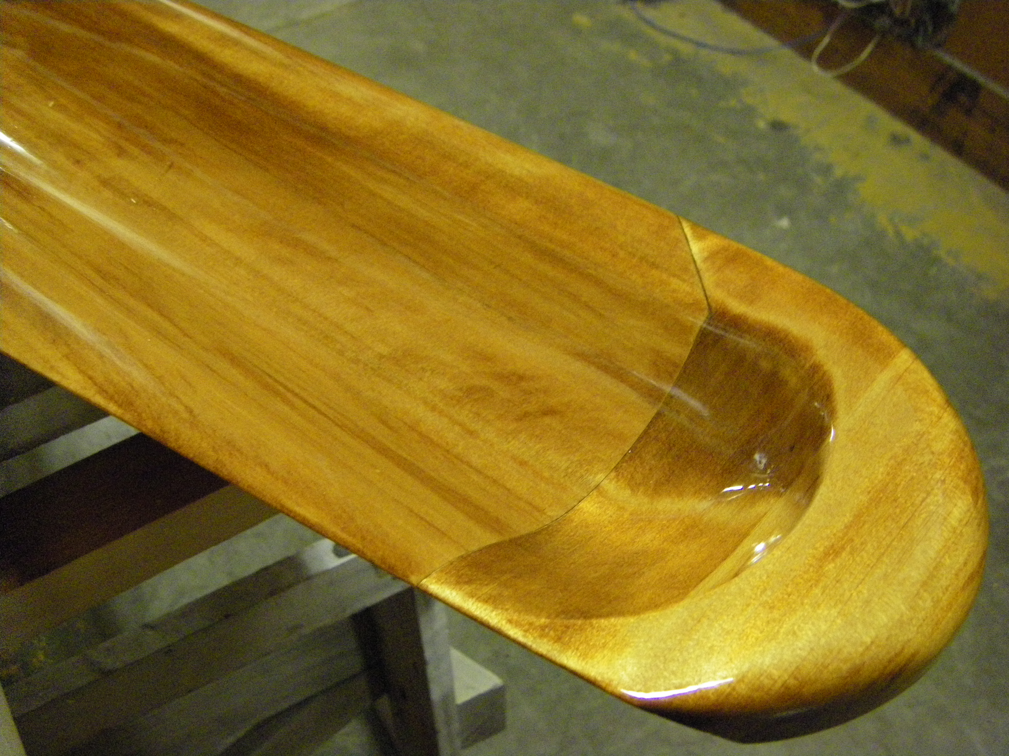 Reeve out old putty between inner layer of planking. Prepare and paint remaining section of hull inside: one coat of primer, two coats of undercoat, and two topcoats.