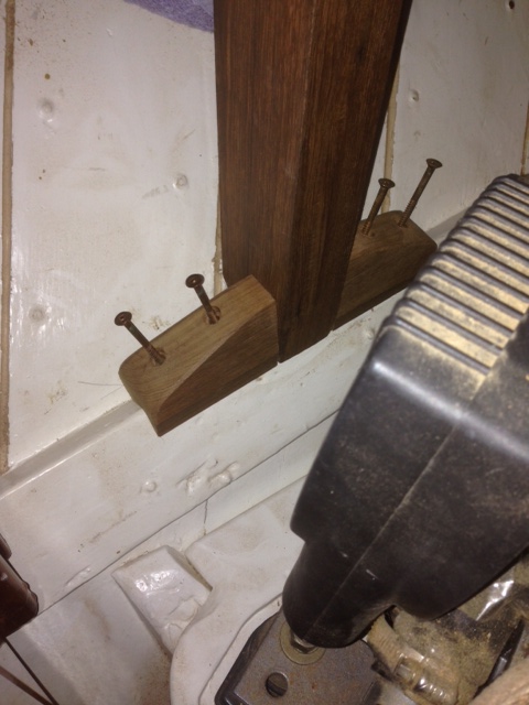Varnish companionway posts and covering boards, to give four and six coats respectively. Mask, glue and bolt down companionway top. Glue posts to companionway framing and secure bottoms with screwed down mortise and tenon blocks. Shape and glue on winch mounting blocks. Glue in covering boards. Fit neoprene seals to skylight leaves. Begin final assembly of skylight components.