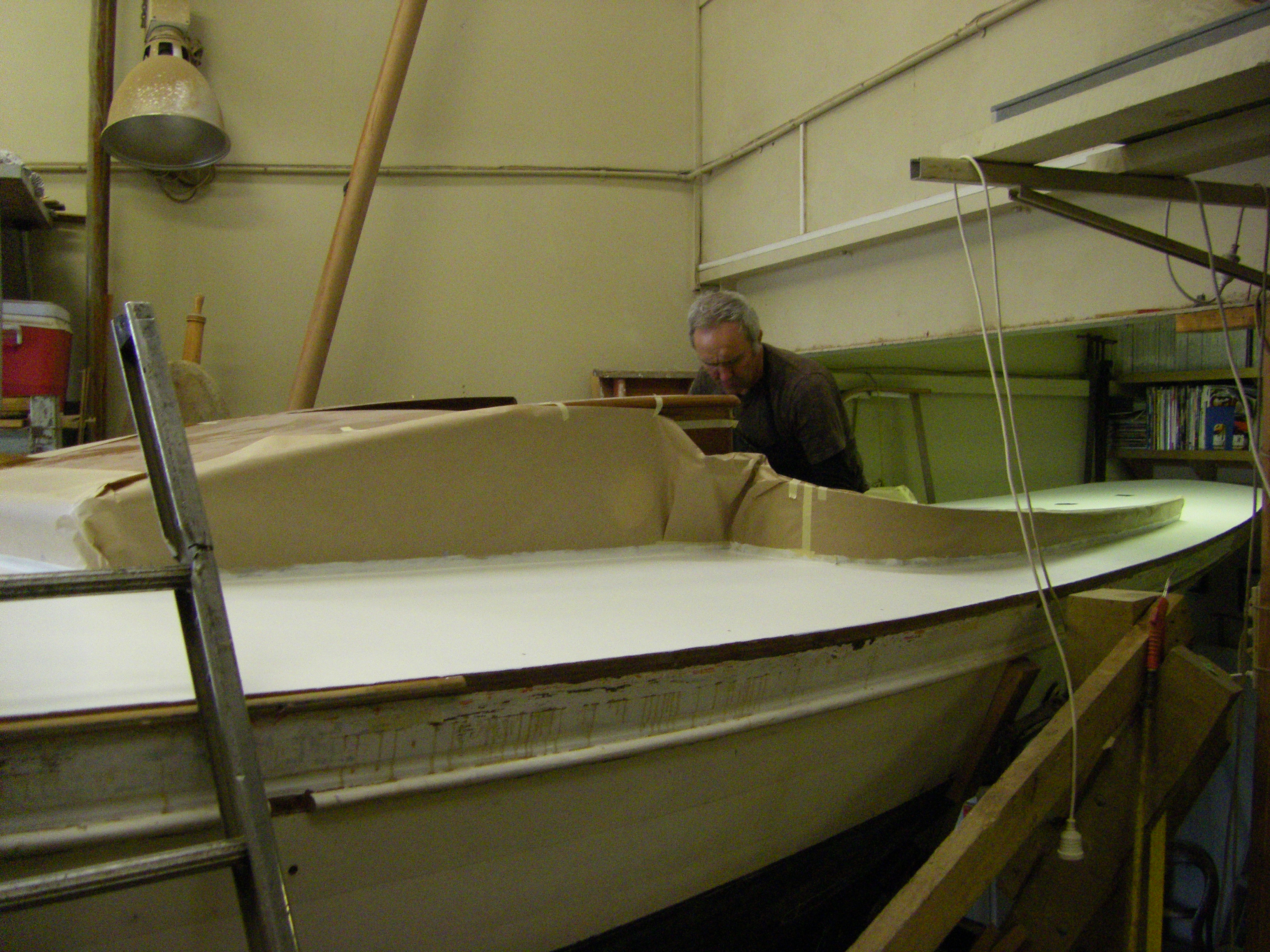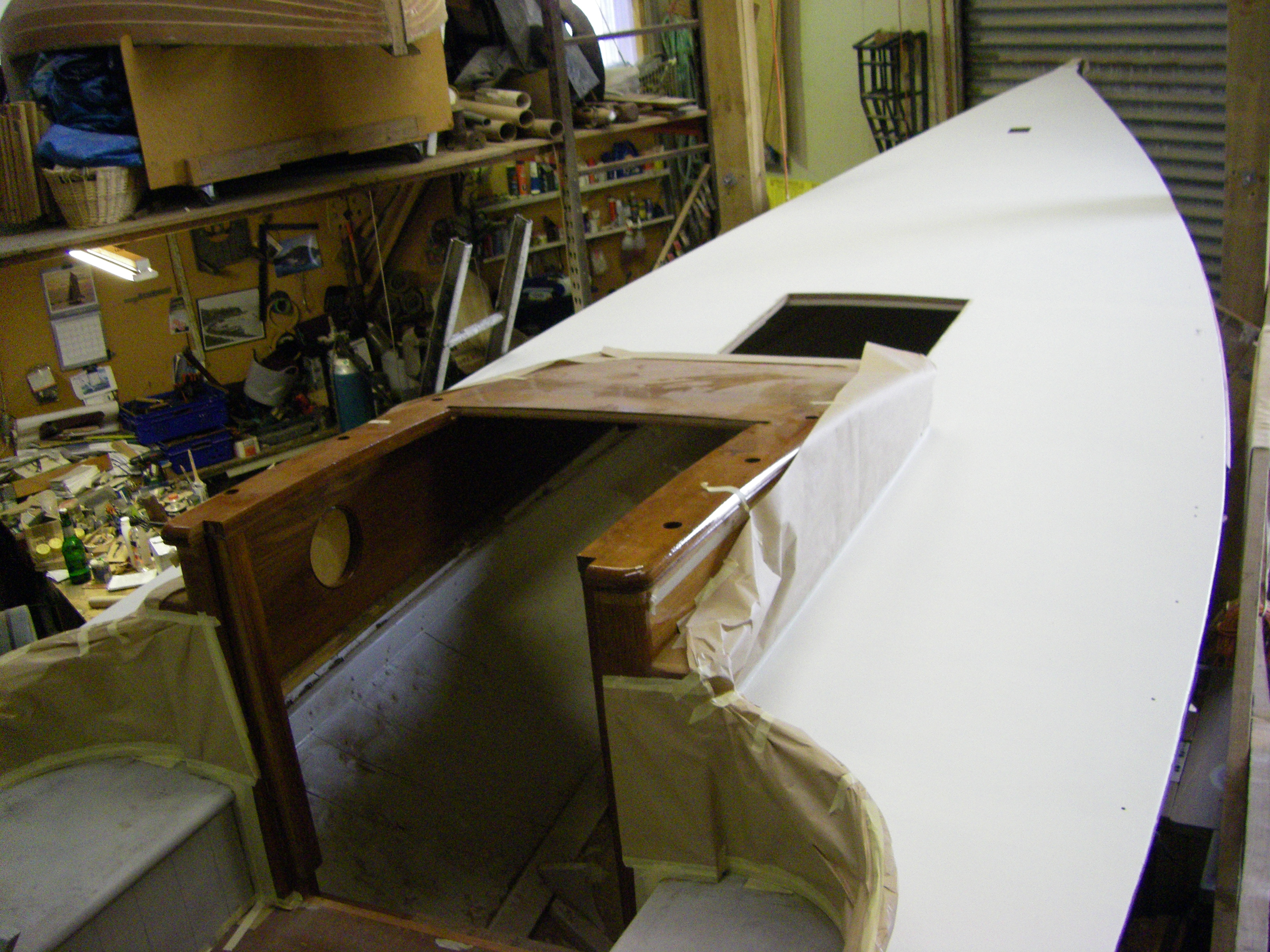 Sand deck resin. Mask furniture as required. Apply one coat of primer and three undercoats to deck. Sand cockpit primer and apply two undercoats.