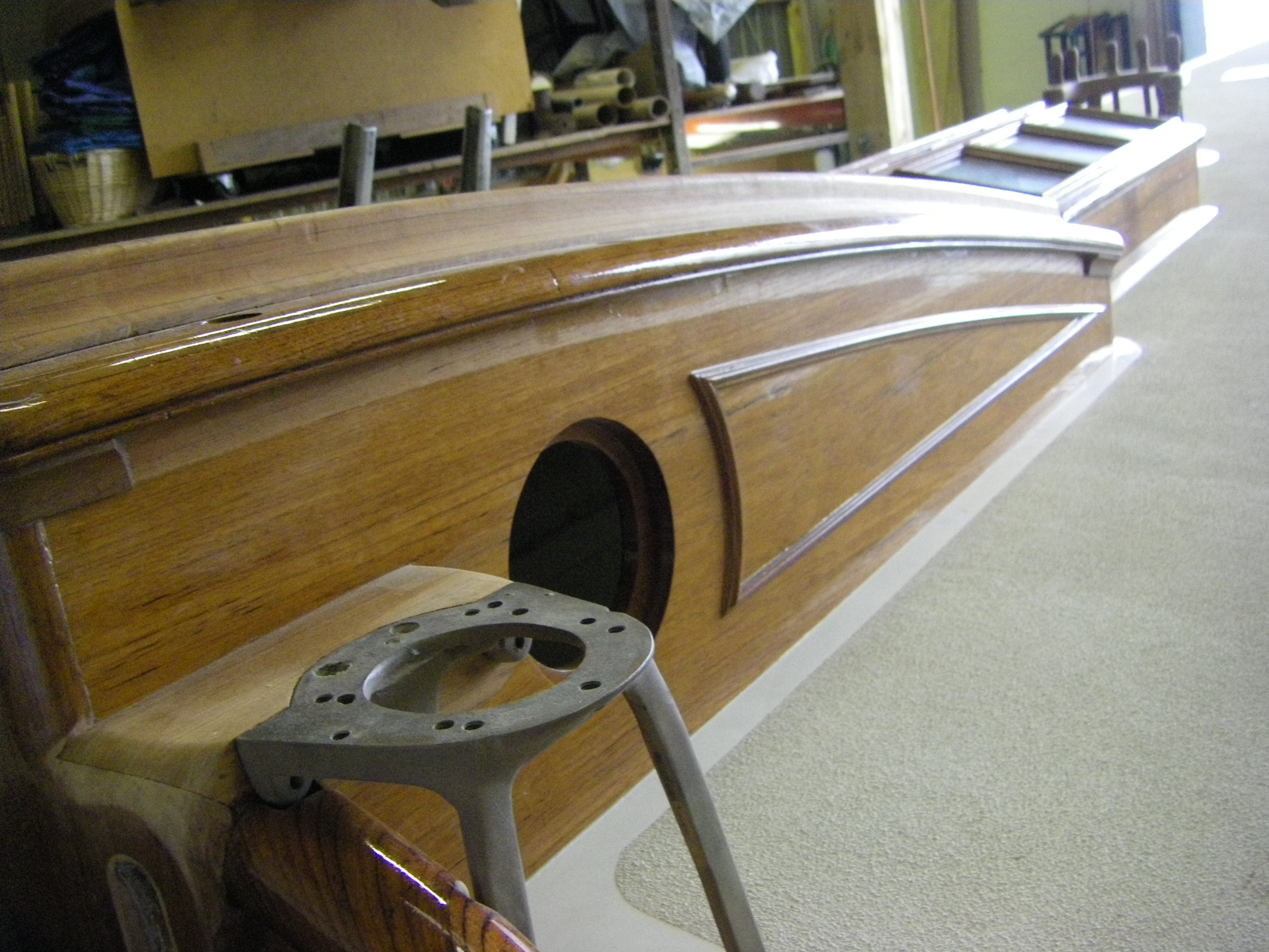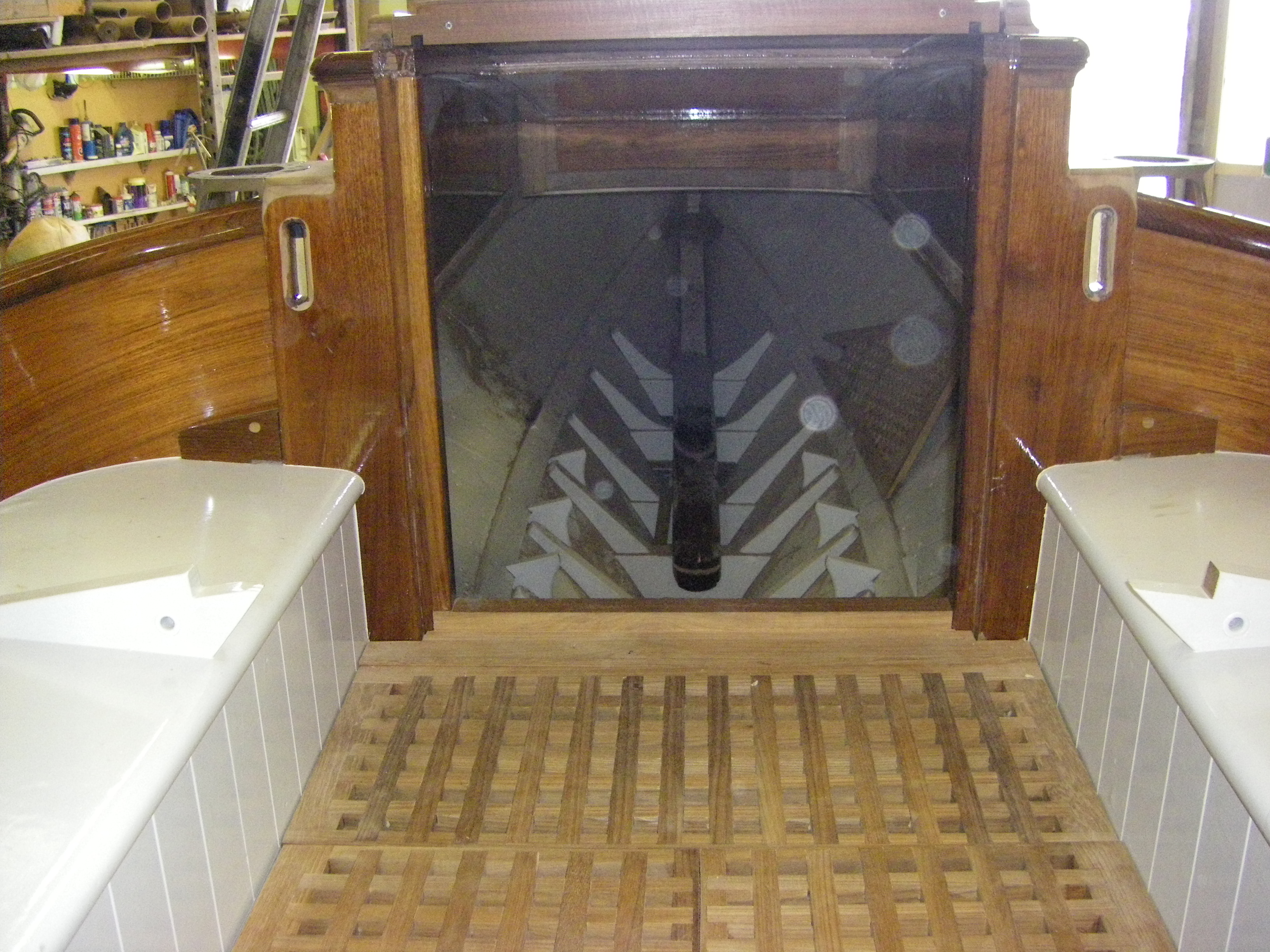 Enable companionway slide to lift and drop over top washboard. Ease guids to ensure smooth running. Fit, glue and screw on slide stop.