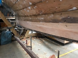 Rogue is a triple-skin kauri hulled, flush decked, gaff rigged 32' racing cutter from NZ — Chas Bailey Jr's first design.