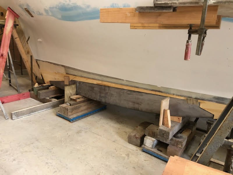 Ballast reinstatement Posted on Sunday, 13 June 2021Sunday, 13 June 2021 by patrickxavier Ballast offered up to hull Silicon bronze rod for keel bolts Gammon iron and whisker stay/dolphin striker attachment
