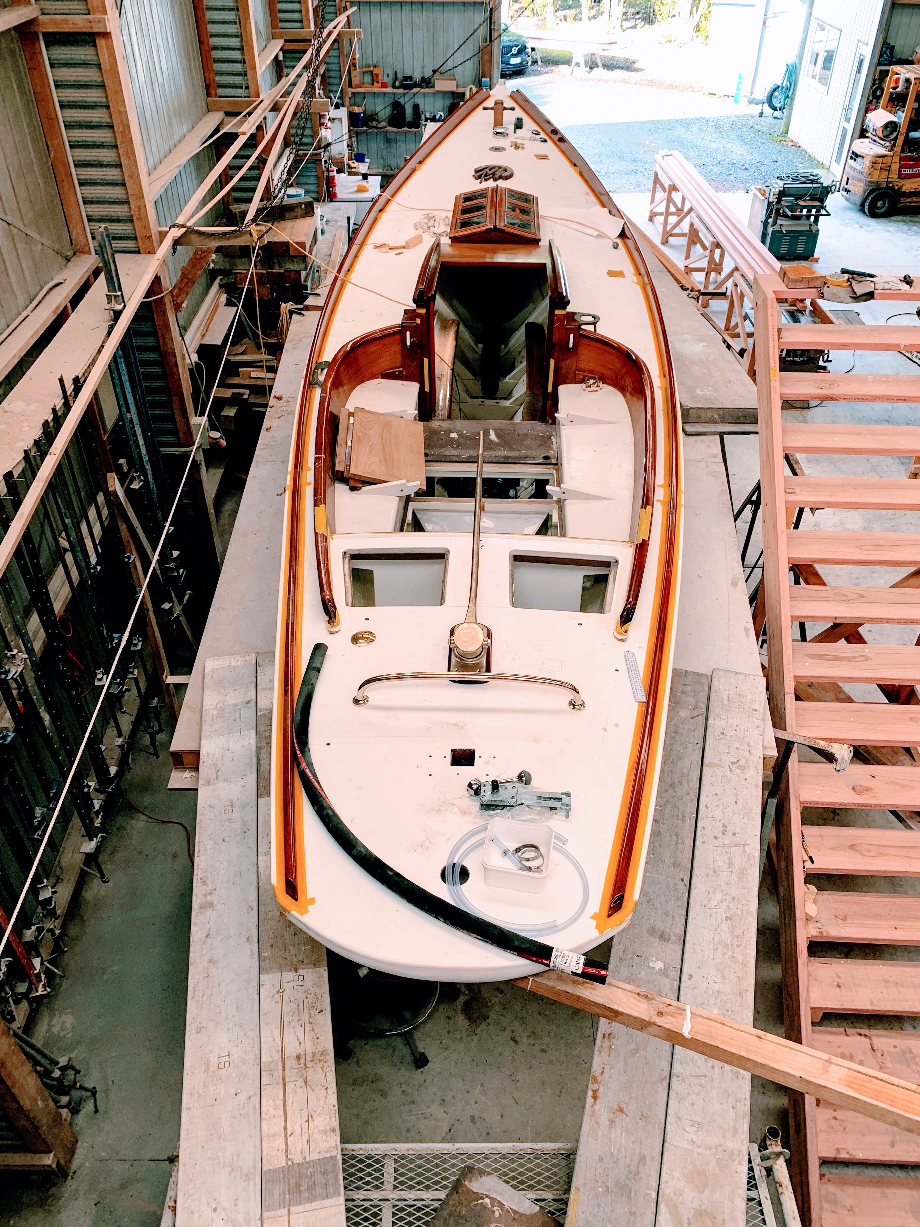 Rogue is a triple-skin kauri hulled, flush decked, gaff rigged 32' racing cutter from NZ — Chas Bailey Jr's first design.