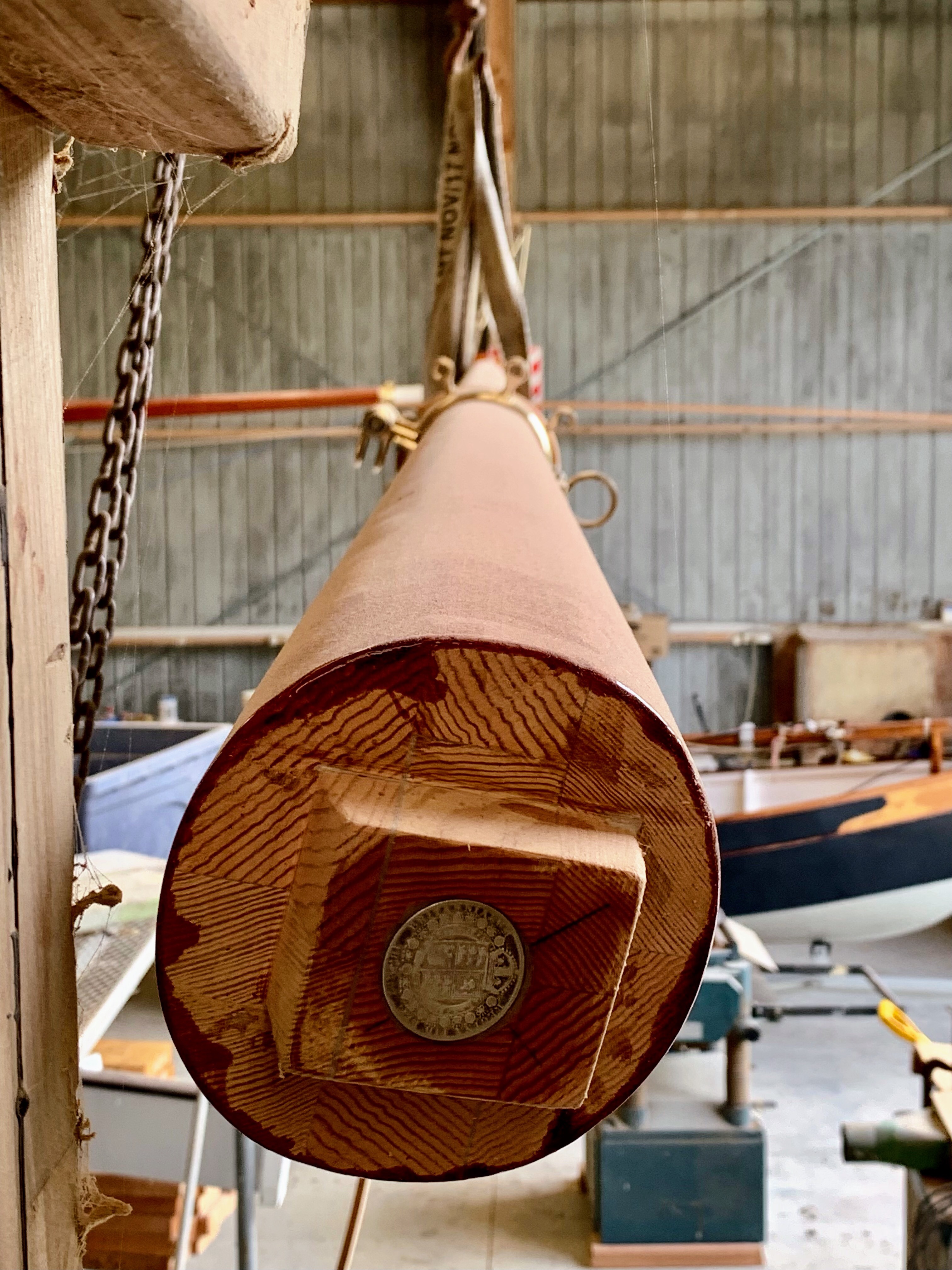 … and of Charles Bailey Sr’s 1893 masterpiece, Viking, coming around the Waitemata Harbour’s North Head in a staunch north-westerly, leaving Rangitoto behind. On the bow of the Logan launch, Doreen, is depicted marine photographer, Henry Winkelmann.