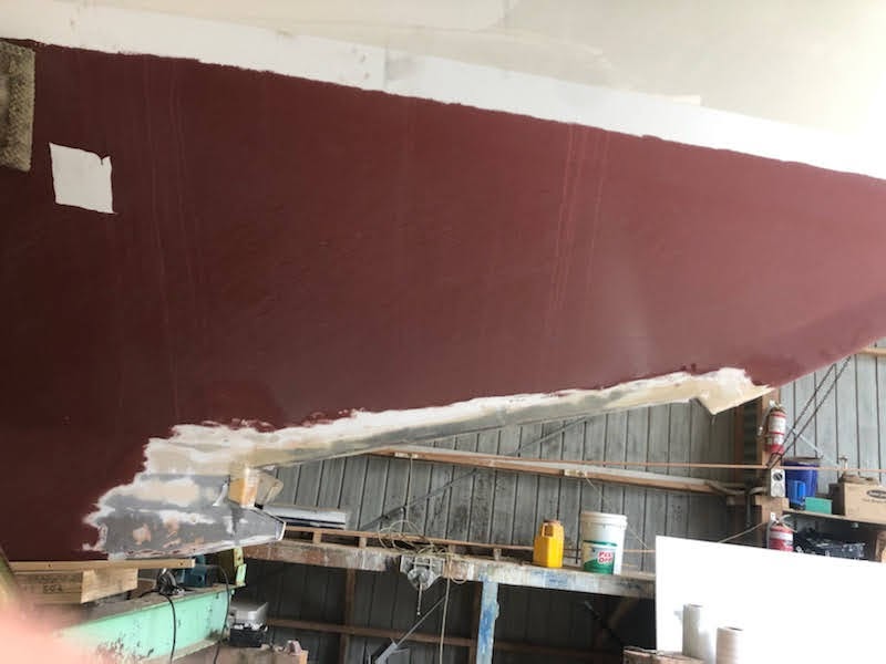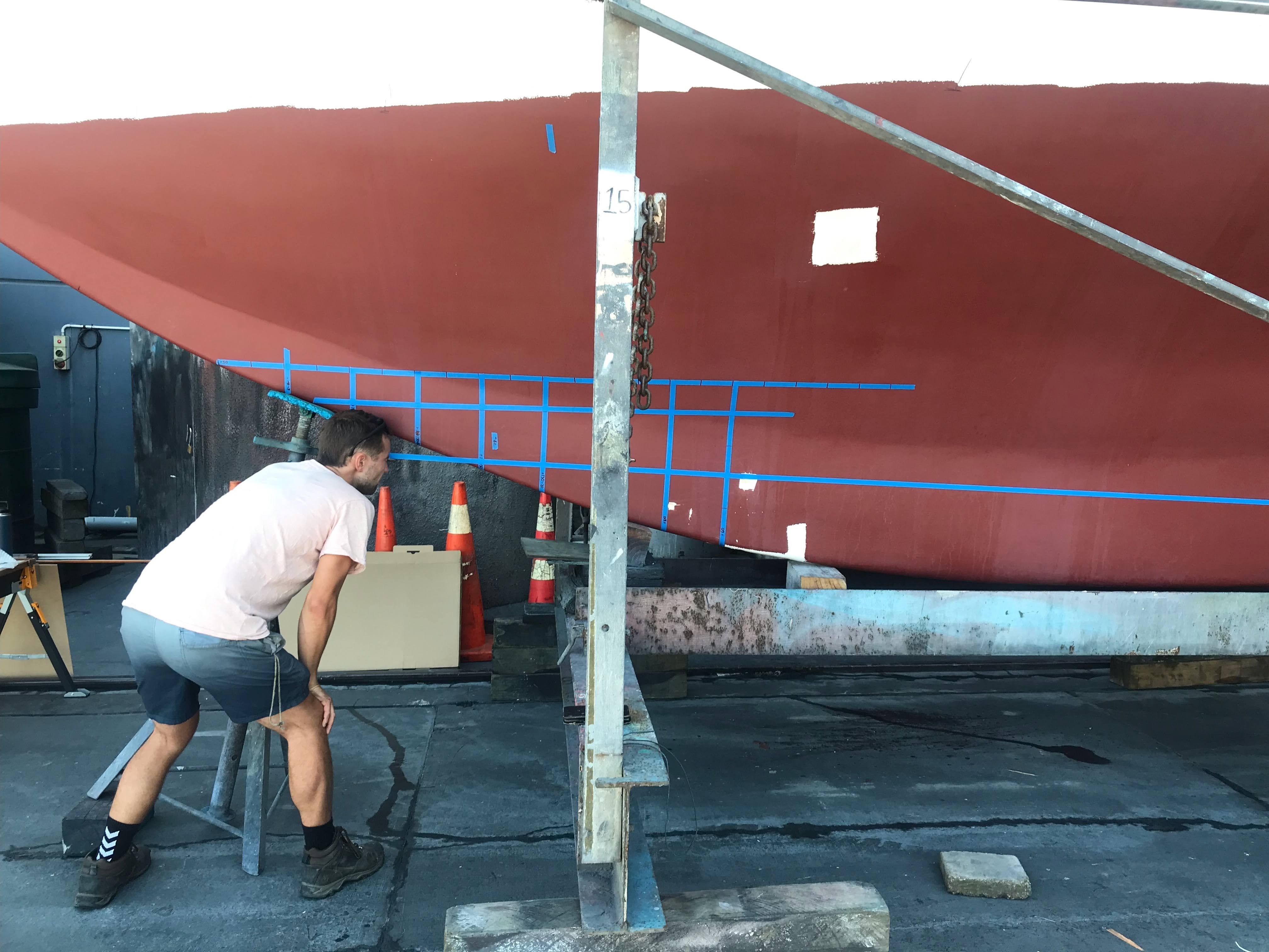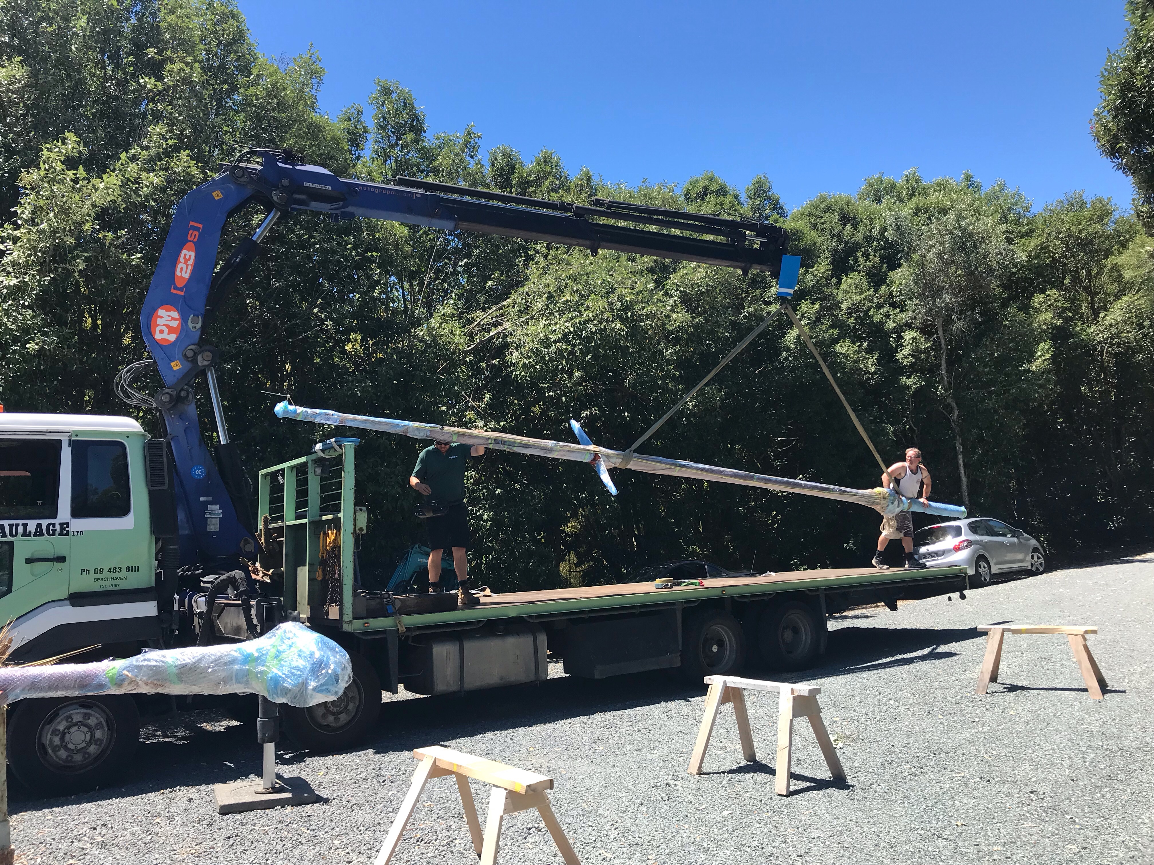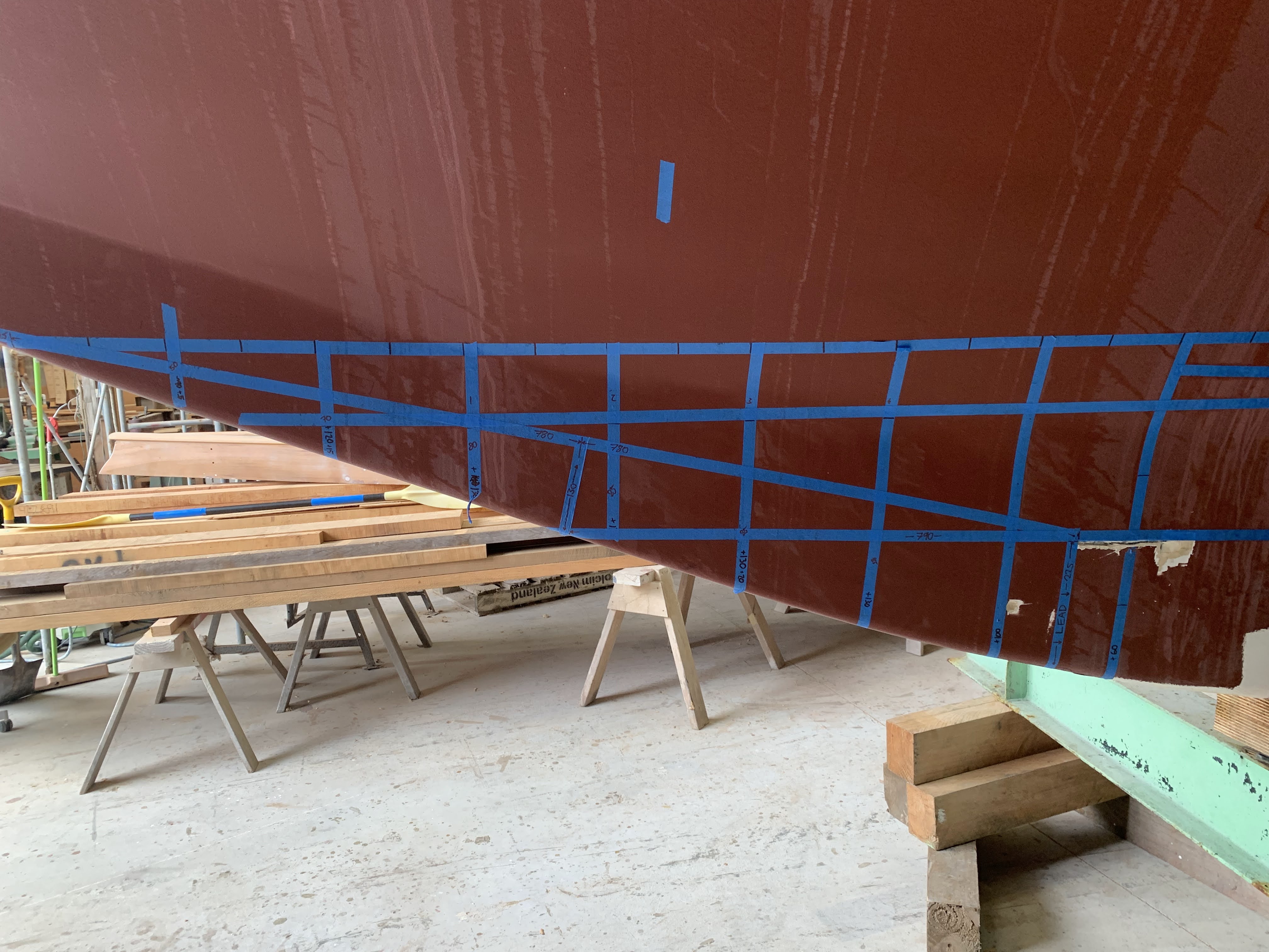 As the last post promised, after some unintended complications, Rogue briefly splashed on 19 January 2022. But she plainly is far too lightly ballasted (as we knew was a risk, when the designed 1900 kg ballast was cast at 1450 kgs), especially forward. She’s now back at the boat yard, for ballast supplementation.