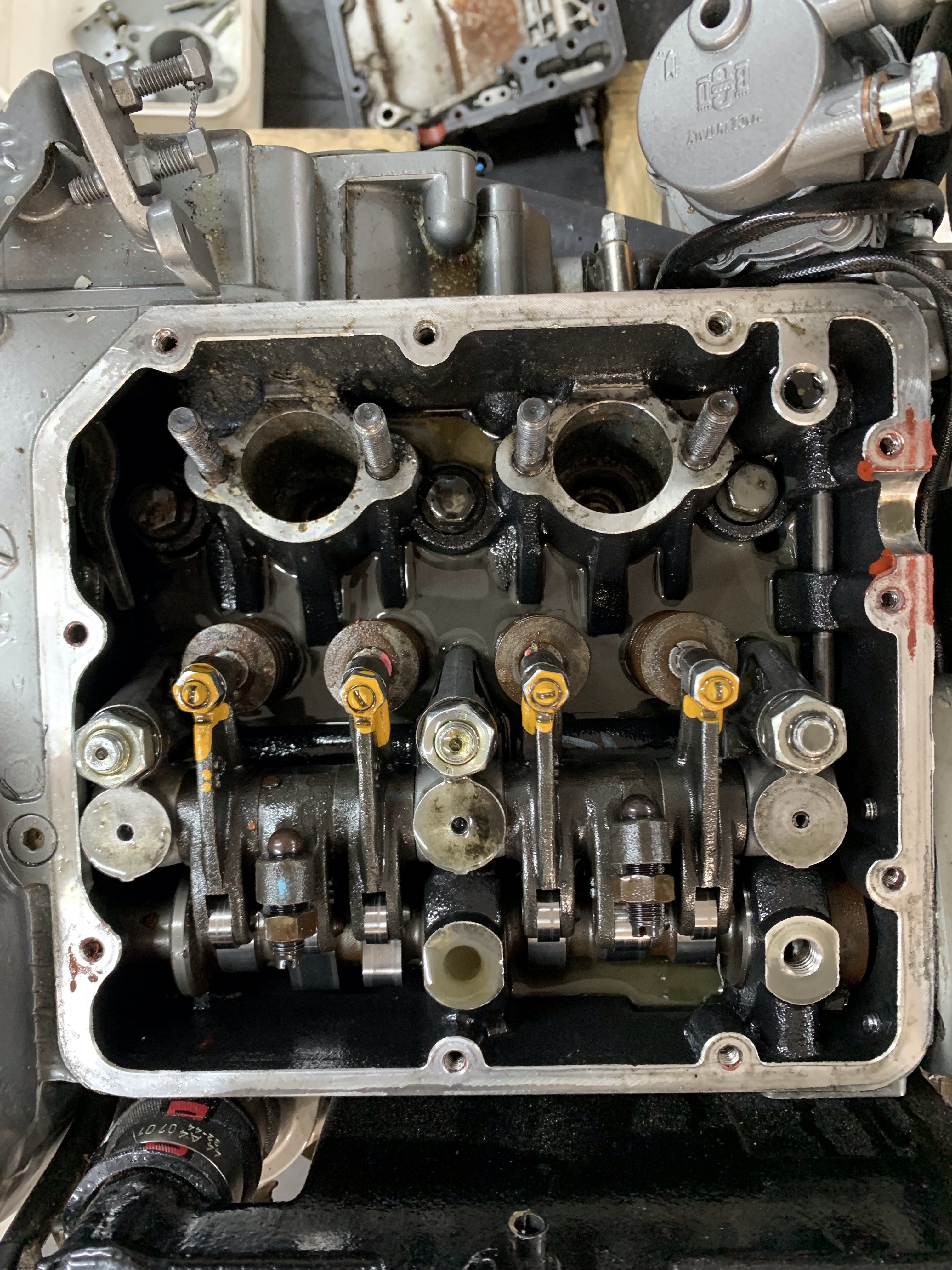 Less welcome is the disassembled engine. Source of water in oil is as yet unclear, both exhaust and water intake being routed well above the waterline. Somehow it appears the gravity-fed sump has become pressurised, so that oil is blown back into engine, perhaps bringing bilge water with it. Investigations continue.