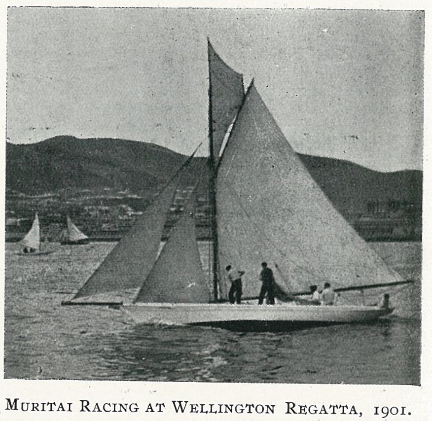 YACHTING IN WELLINGTON, 1901 (BY ‘BOAT ‘ARBOUR BILL’)The photo reproduced of the Muritai depicts her on her first appearance in Wellington waters as long ago as 1901. She was then owned by Mr R C Renner, who purchased her from Mr W A Wilkinson, of Auckland, and changed the name from Rogue to Muritai. Mr Renner, who has just been elected Rear-Commodore of the Port Nicholson Yacht Club, has chartered her for the ensuing season from Mr G F Bothamley, the present owner, so he will be enabled to renew old associations in a very pleasant setting.… Practically the whole of the old second class of 12 years ago are now racing as first class boats in the Port Nicholson Yacht Club races. To those who lament the passing of the old timers, this ought to give them some cause for rejoicing. The Muritai did not do so well on her first appearance in Wellington as she did afterwards, whilst in recent years she has, under her yawl rig, opened the eyes of many who thought her a back number. The suit of sails in the photo are her original Auckland sails, so Mr Renner informs me.A visit of inspection by our representative to Muritai, which is hauled out at Martin’s Bay, shows her to be in first-rate condition and reflects credit on the way her owners have looked after her during some twenty years of service and is a striking testimony to the good work put into her by Mr Chas Bailey, junr, who built her in his back yard at the North Shore for Mr Fred Russell. She was sailed by ‘Jocky’ Breen, now of Wellington. Since leaving Auckland she has had two 5cwt half cigar shaped bulbs of lead added to the bottom. - Evening Post, Volume LXXXVI, Issue 120, 17 November 1913, Page 2: The yacht racing season in Wellington was opened on Saturday. Early in the afternoon there was hardly a breath of wind, but at about 3.15 a light northerly sprung up, and the yachts were enabled to carry all sail through the several races. In the first-class race of the Port Nicholson Club, Atlanta, in receipt of 10min from the scratch boat (Wairere No. 1), showed the spectators what a smooth boat she is, as she won easily, Muritai being second and Wairere No.1 third.
