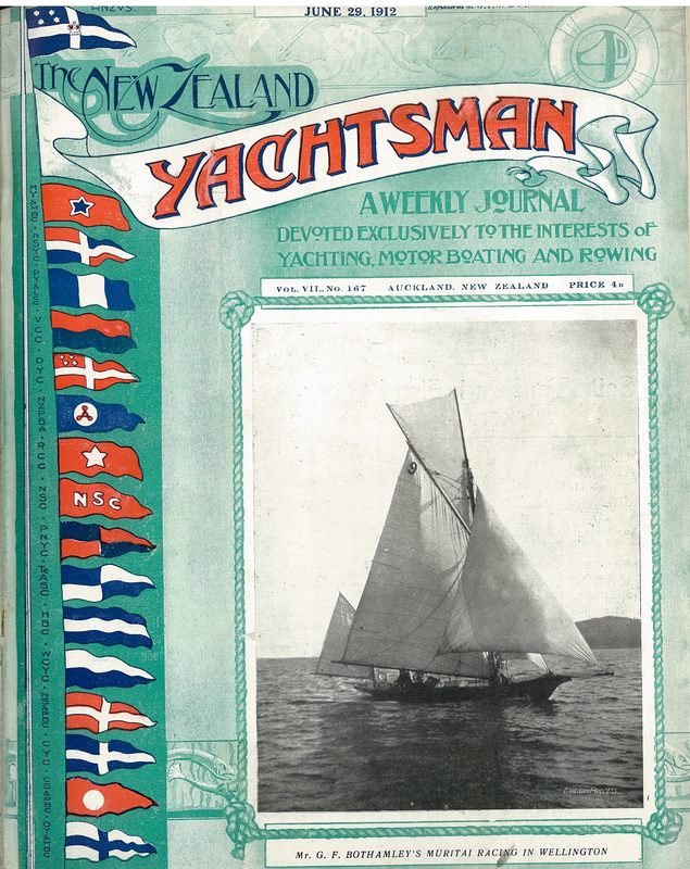 - Dominion, 23 September 1911, Page 12: Mr G Bothamley has purchased Mr S Forbes’s share of the yacht Muritai and intends to turn her into a yawl.